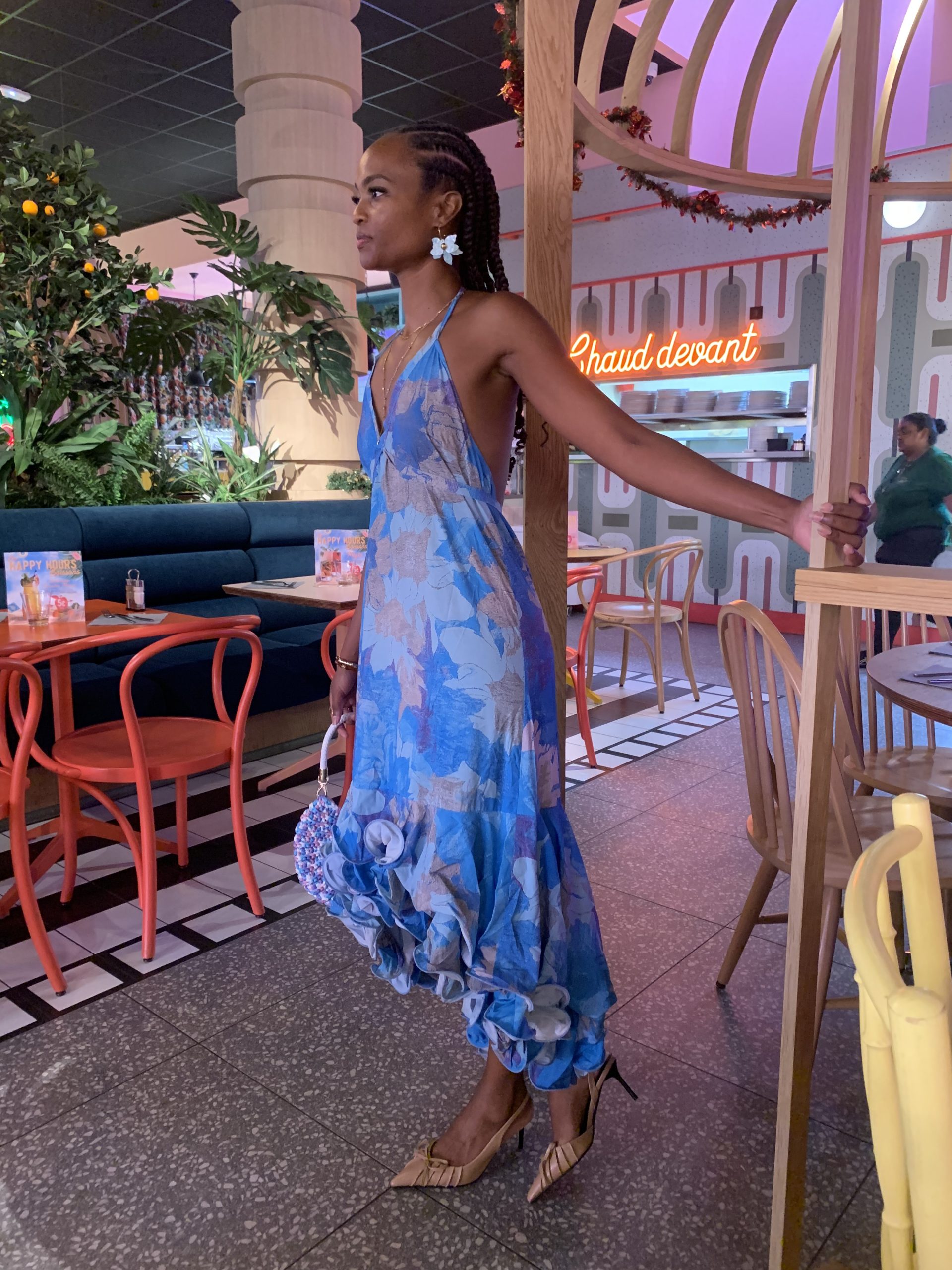 * Audrey mesure 1m62, la robe à l’avant fait environ 91 cm et au dos 93cm